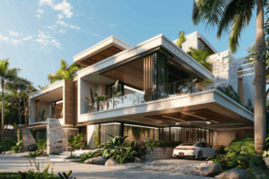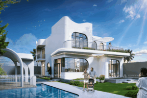 - Phối cảnh 3D kiến trúc biệt thự và sân vườn nếu có
